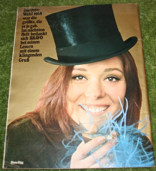 German TV listing magazine.  As well as television listings , this magazine was and still is more of a gossip magazine. Famous in Germany for their popular Star Schnitt photographs. Each issue contained part of a larger photograph which when all were collected made a close to life size image of a famous person.  Diana Rigg back cover.