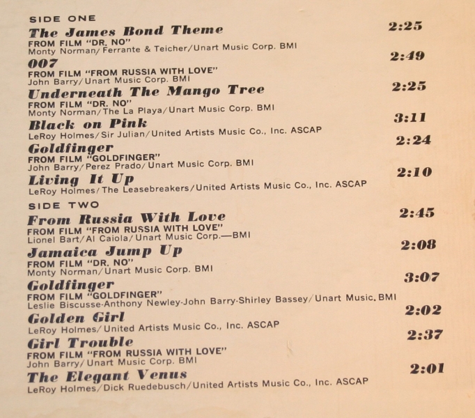 Music to read James Bond By LP bond 60s generaljohn United Artists album of James Bond music issued mid sixties. UAS6415 [Show as slideshow]
